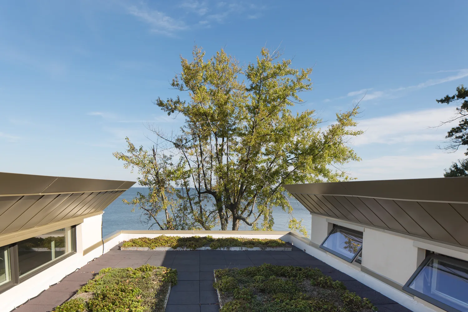 Given its waterfront setting, durability was paramount. The home is constructed with minimal wood to reduce the long-term effects of moisture exposure. Walls and floors are built from Autoclaved Aerated Concrete (AAC), a lightweight, mold-resistant material known for its strength, fire resistance, sound absorption, and high insulating value. Widely used internationally for decades, AAC offers lasting performance with a smaller environmental footprint.