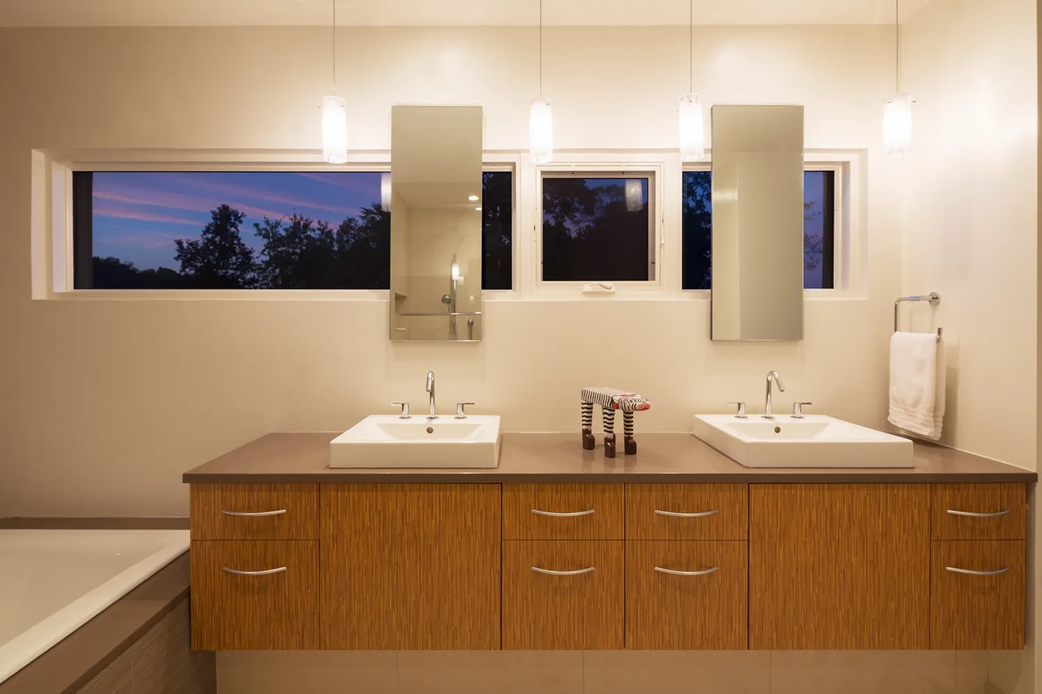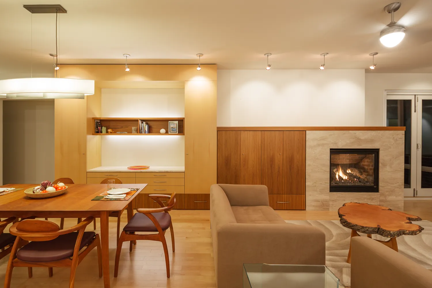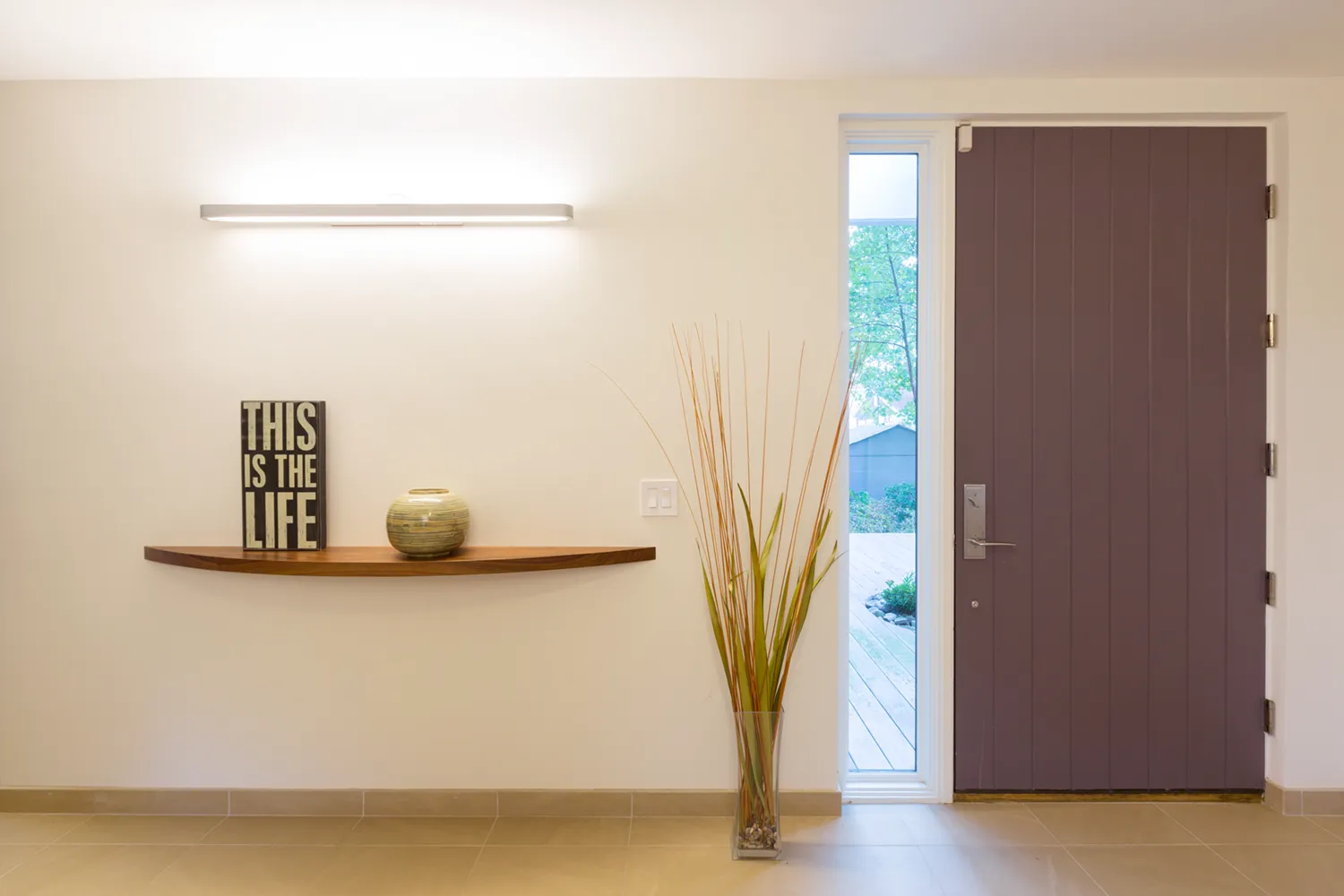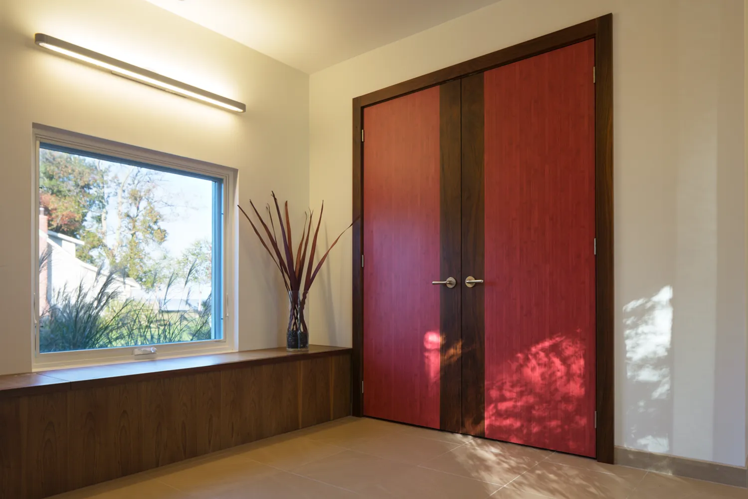 Sustainability extends to the roofscape. A planted sedum roof helps manage stormwater on site, while photovoltaic panels are seamlessly integrated into the standing seam metal roof on the south-facing slope. Throughout the home, energy-efficient appliances, low-flow fixtures, and zero-VOC finishes support a goal of long-term environmental responsibility and everyday well-being.